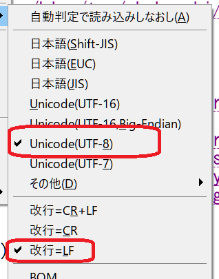 (UTF-8などLunuxで扱える形式にする必要あり&改行はCR+LFではなく、LFでないと動作しません。)