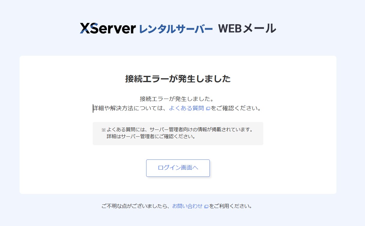 WEBメールにログインすると、「接続エラーが発生しました」と表示されます。