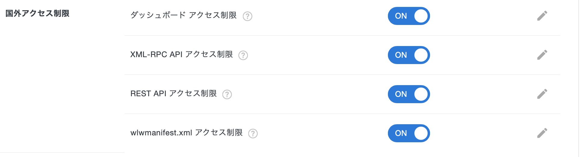まだWordPressの国外アクセス制限をOFFにはしていません。