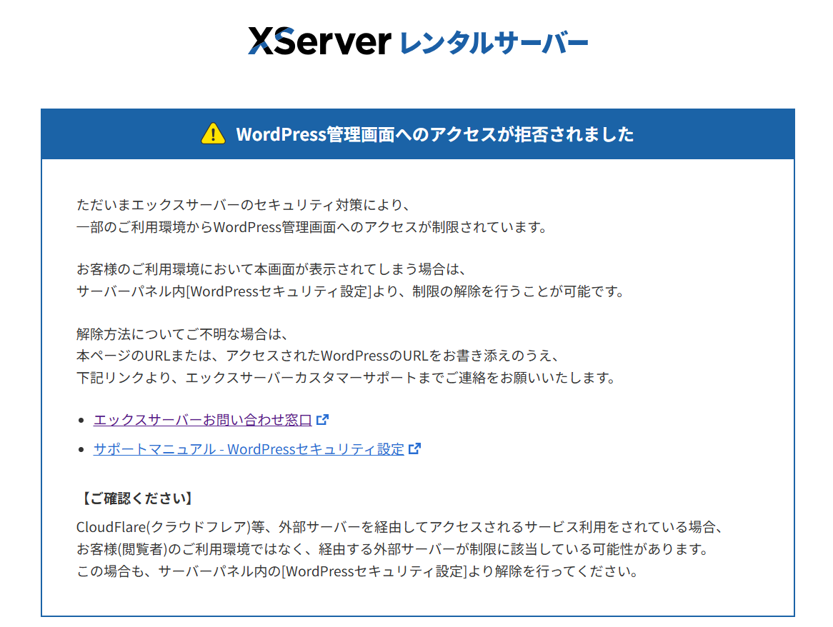 【1】エックスサーバーからWordpressにログインしようとするとログイン拒否になってしまう